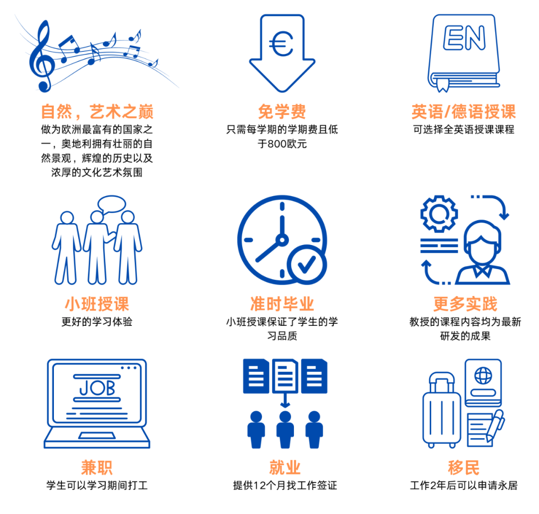 学员只需提供高中会考成绩,成功申请后在奥地利完成为期9个月的IFP基础课程,课程结束后成绩合格即可直升奥地利大学就读本科。